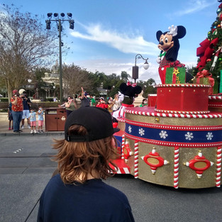 We loved riding the ferry into Magic Kingdom and the parade. Watching all the characters pass by and sing Christmas carols was so fun.
